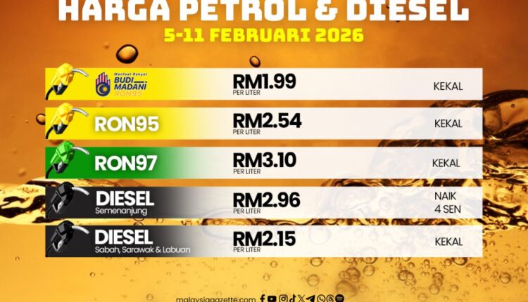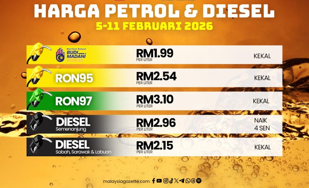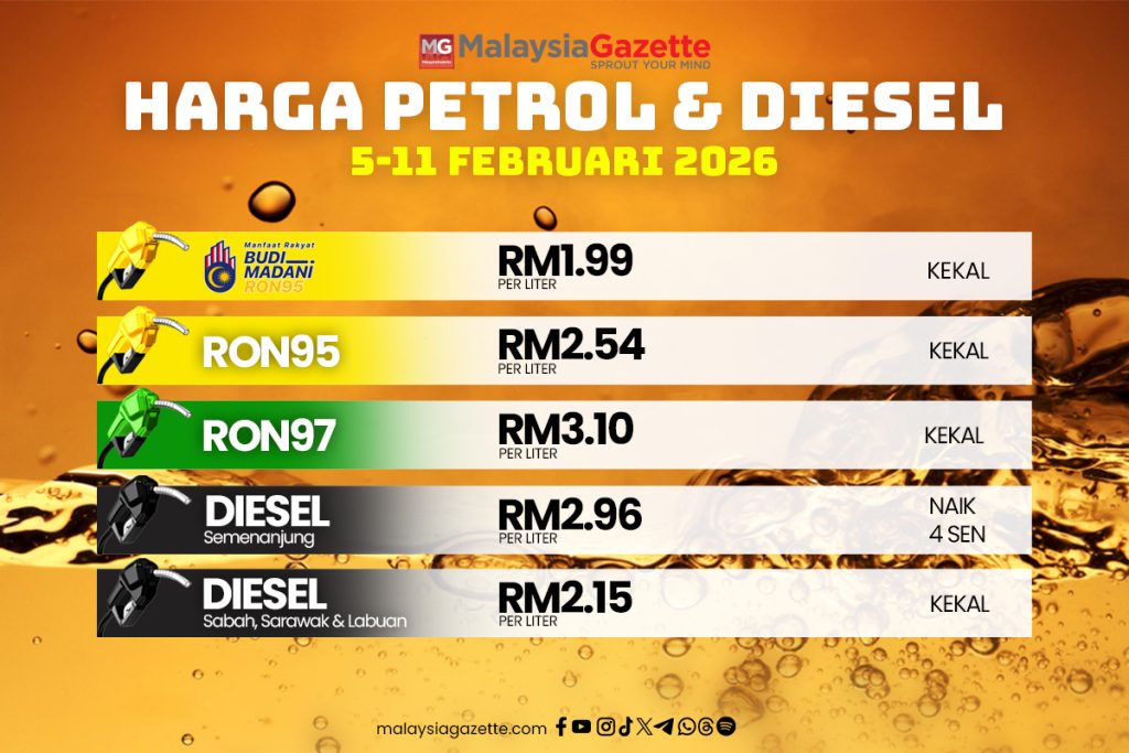 Berpandukan mekanisme penentuan harga automatik (Automatic Pricing Mechanism), semakan mingguan menunjukkan harga runcit bagi produk petroleum lain tidak mengalami perubahan untuk tempoh 5 hingga 11 Februari 2026.
