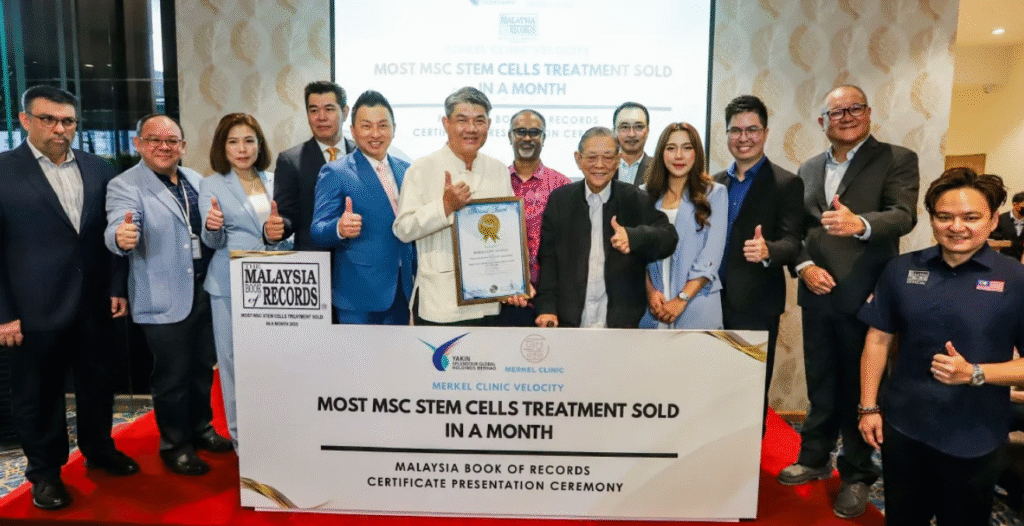 Yakin Splendour Global Holdings Berhad terus mengukuhkan pengaruhnya dalam industri bioteknologi tempatan apabila anak syarikatnya, Klinik Merkel di Sunway Velocity, berjaya mencatat rekod Malaysia Book of Records (MBR) sebagai ‘Most MSC Stem Cells Treatment Sold in a Month’.