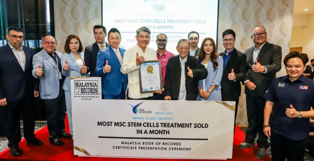 Yakin Splendour Global Holdings Berhad terus mengukuhkan pengaruhnya dalam industri bioteknologi tempatan apabila anak syarikatnya, Klinik Merkel di Sunway Velocity, berjaya mencatat rekod Malaysia Book of Records (MBR) sebagai ‘Most MSC Stem Cells Treatment Sold in a Month’.